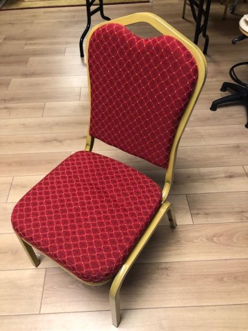 Alüminyum iskeletli, sünger dolgulu oturma kısmı, dayanıklı kumaş kaplama, hafif ve üst üste istiflenebilir.