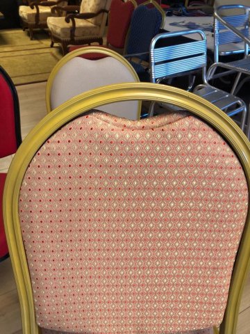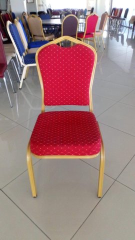 Hilton Sandalye Üretimi - Alüminyum veya metal iskelet, sünger dolgulu oturma kısmı, kaliteli kumaş veya deri kaplama, hafif ve ergonomik.