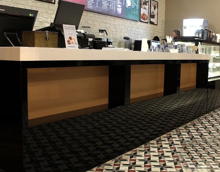 Kaplamalı banko modelleri, kafe, bar ve lounge mekanlarında modern ve sofistike bir görünüm sağlar.
