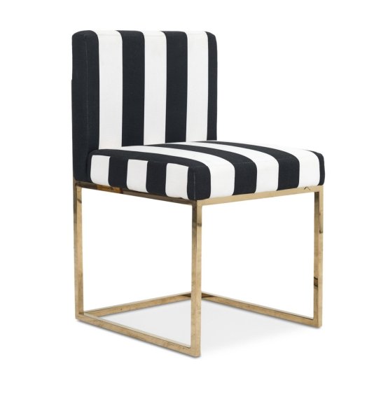 Klasik çizgili, altın kaplamalı ve dayanıklı cafe sandalyesi.