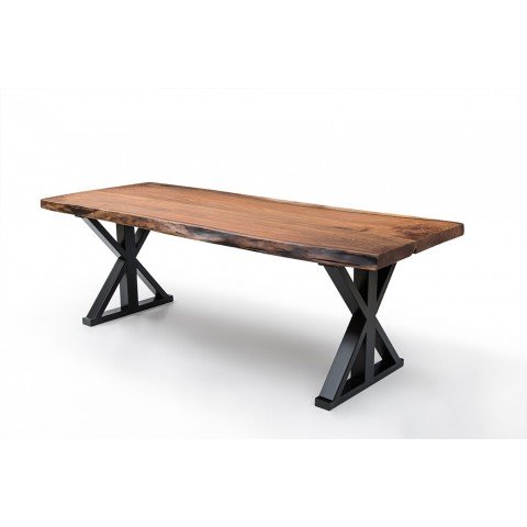 Ceviz ağacından yapılan bu kütük masa, geniş ölçüleri ve doğal kenarlarıyla büyük yemek alanları için idealdir.