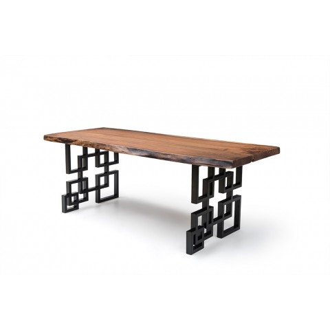 Masif ceviz ağaçtan üretilen kütük masalar, doğal yapısı ve sağlamlığıyla prestijli kullanım alanlarına uygundur.