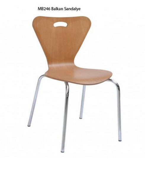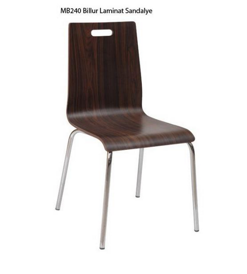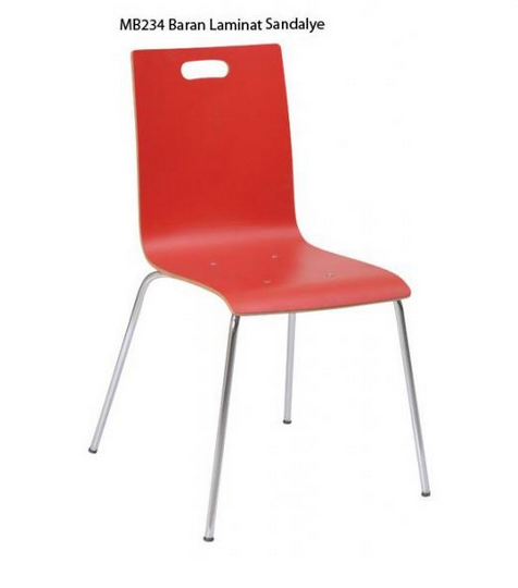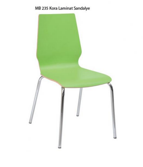 Laminat malzemeden üretilmiş, istiflenebilir, ergonomik sırt yapısı ve hafif gövde ile cafe ve okul için ideal.